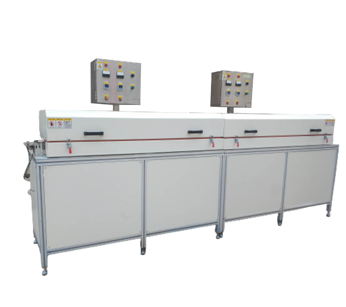 1、采用进口温控系统,PID自动演算,可选装PLC、触摸屏系统控制,台达或三菱变频器控制传动速度,无极变速,可根据客户要求选配网链、网板、PVC作为输送带光电感应,自动升降门,高效节能